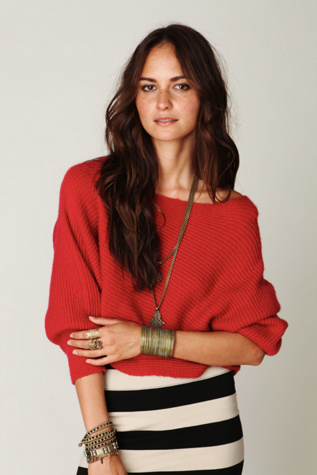 Red off-the-shoulder sweater, Free People.